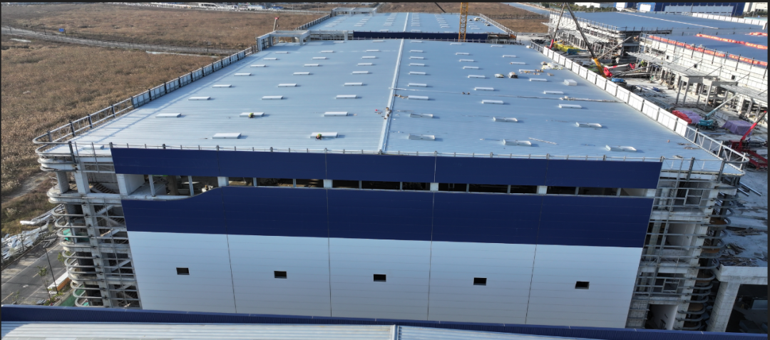 濟(jì)寧一建鋼結(jié)構(gòu)工程有限公司承建的金屬屋面及維護(hù)工程,涉及1#-4#物流倉庫、高架立體庫。倉庫跨度80米,屋面標(biāo)高34.1米,為雙向找坡結(jié)構(gòu)。該項目建設(shè)規(guī)模大、工期緊、技術(shù)精度要求高、工況復(fù)雜,自項目開始施工。公司對現(xiàn)場管理嚴(yán)格要求,積極配合業(yè)主及總包的整體調(diào)配,施工嚴(yán)格執(zhí)行施工方案,遵循規(guī)范標(biāo)準(zhǔn),合理安排人、機(jī)、料等,戮力同心將馬士基臨港旗艦倉項目打造成精 品工程、優(yōu) 質(zhì)工程。